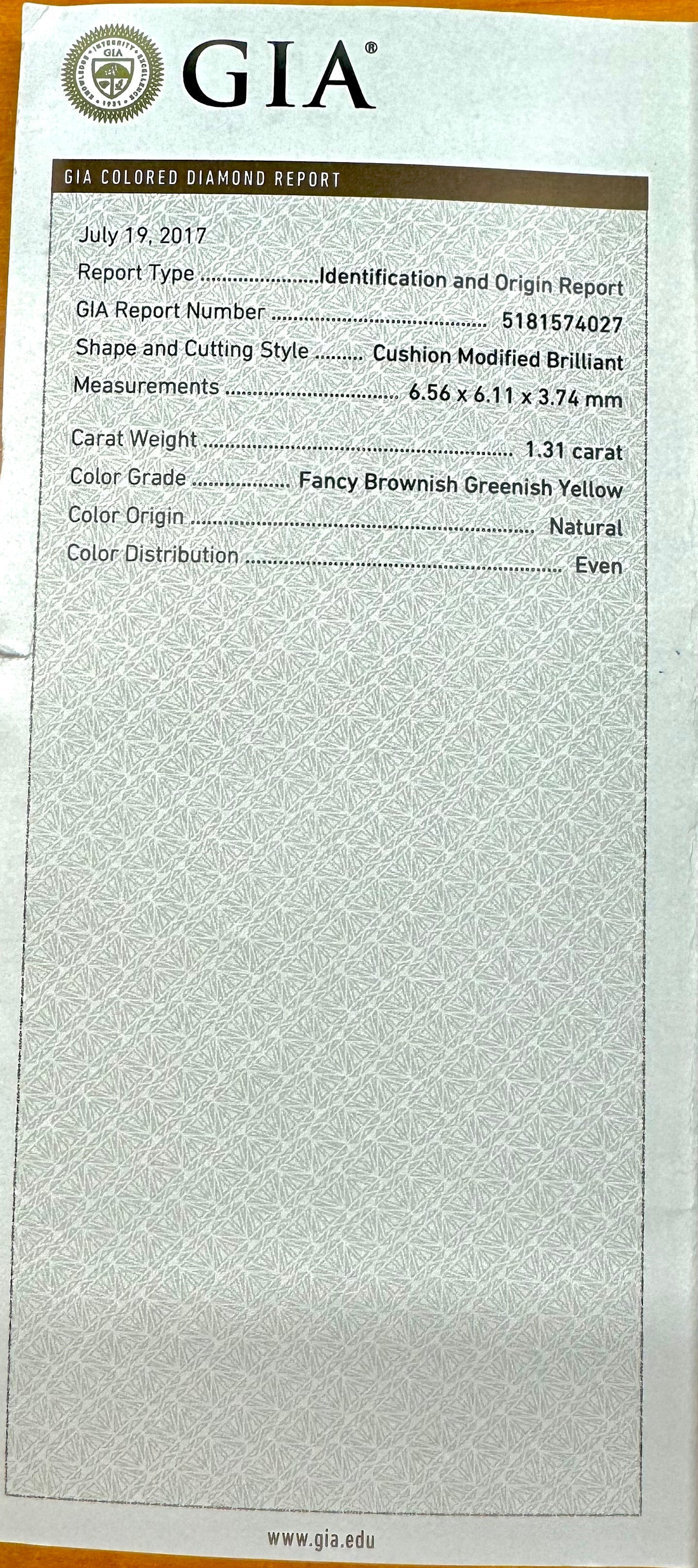 Center Stone : Certification : GIA